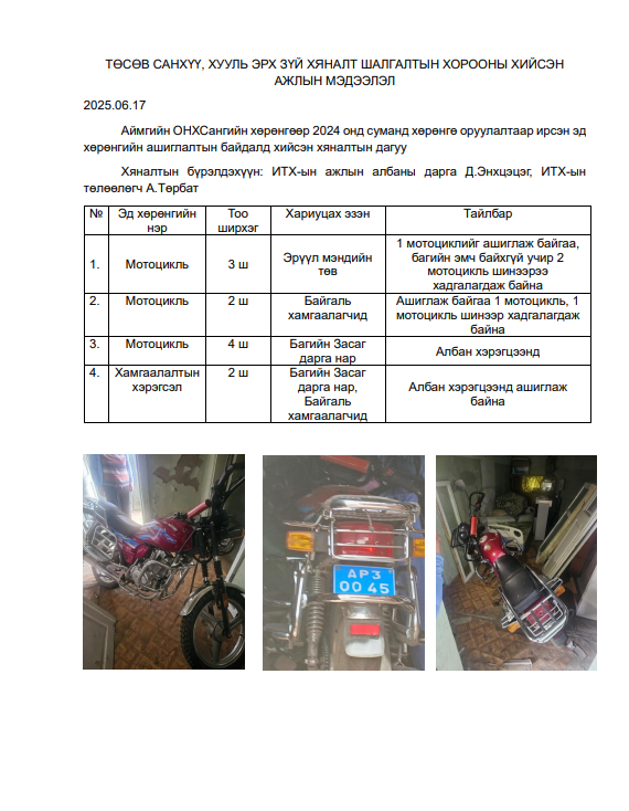 Төсөв санхүү, хууль эрх зүйн хяналт шалгалтын хороо төлөвлөгөөний дагуу хийж гүйцэтгэсэн хяналт шалгалтын мэдээлэл